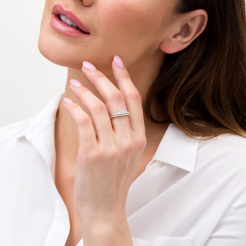 1/4 CT. T.W. Diamond Princess Tiara Lasso Ring in Sterling Silver and 10K Gold